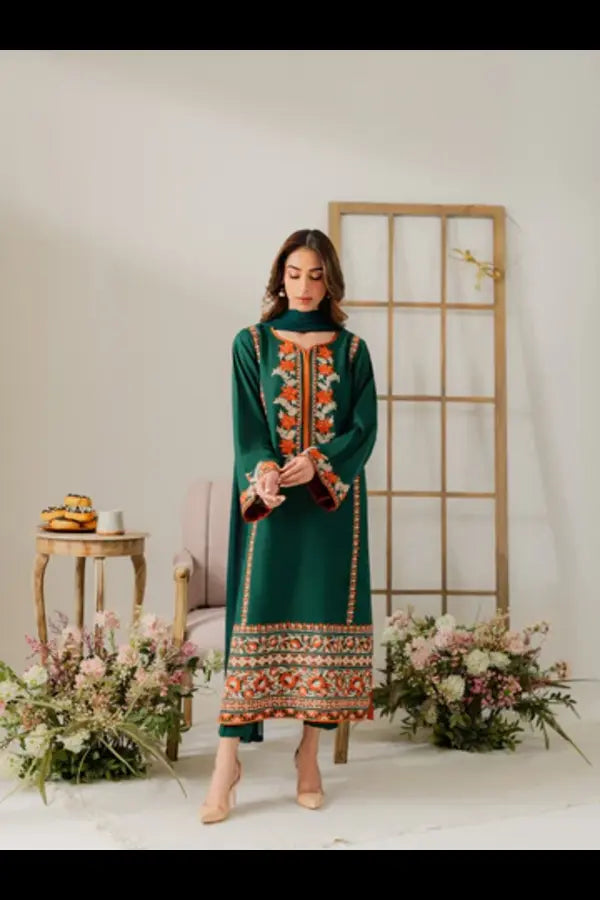 Multi Sabz 3pcs– Mongia Green 🌿 ✨ Fabric: Premium Linen✨ Intricate Embroidery Work✨ Long graceful shirt with standard-fit trousers✨ Elegant...